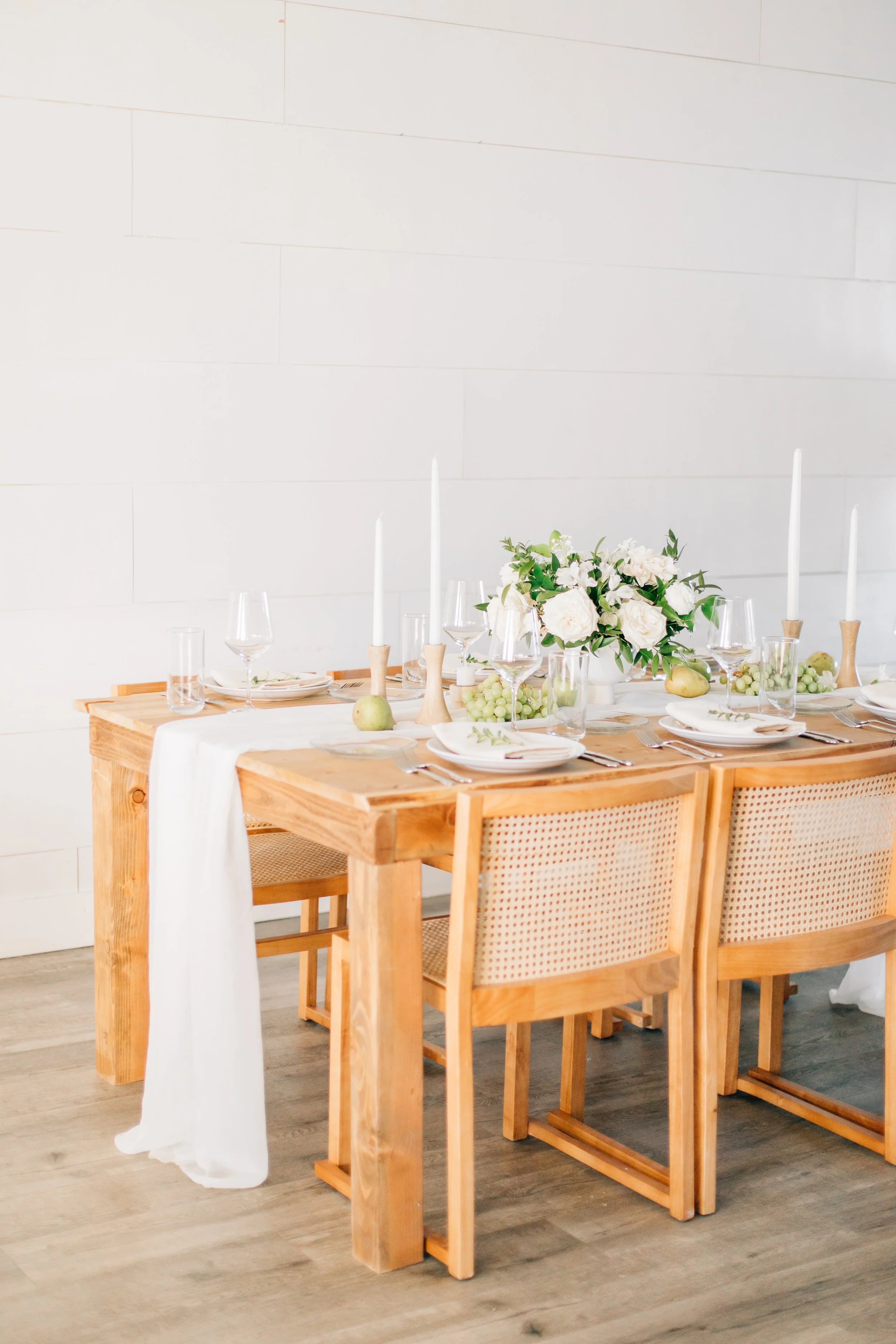 At 8 ft long and 3.5 ft wide, these tables provide both ample space for dining and decor, and seating for 8-10